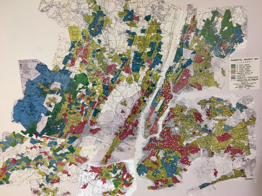 In 1938 — as the New Deal infused capital into cities and Robert Moses molded New York — the federal Home Owner’s Loan Corporation (HOLC) carved America into the unequal landscapes it is today. In the Bronx, my home borough of New York City, it granted the Riverdale and Fieldston neighborhoods its green, first grade, type A status. HOLC recognized that Riverdale and Fieldston were of the newest, most suburban, and most secure of neighborhoods for real estate investment. They were most desirable for what they did not have: communities of color. HOLC’s forms lay it bare:
